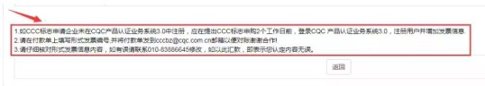 | 為方便高效、便捷的申購CCC標準規格標志(以下簡稱"CCC標志"),中國質量認證中心于2018年5月1日起開通CCC標志在線申購功能,獲證電源適配器廠家可登陸產品認證業務在線申辦系統(3.0)填寫CCC標志申購信息在線申購,同時為滿足不同區域客戶的申購需求,中國質量認證中心11個分中心已開通現場受理渠道,客戶可就近選擇,具體申購須知詳見中心官網《CCC標志專欄》。 CCC標準規格標志在線申購系統操作指南如下: ![]() 流程1. 客戶登陸中國質量認證中心產品認證業務在線申辦系統(3.0)www.cqccms.com.cn ![]() *注. 在線申購僅限于通過中心產品認證業務在線申辦系統獲得強制性產品認證證書的用戶。(若非注冊用戶申購,請先注冊系統用戶名后通過精確查詢證書的方式關聯工廠編號在線申購。) ![]() 流程2. 進入登陸頁面后,在左側任務欄點擊“CCC標志購買”,選擇“CCC標準標志申請”欄目 ![]() 流程3. 新增申購申請,請點擊“CCC標準標志申請”中“新增”選項 ![]() 流程4. 如實填寫企業相關申購信息 *注:紅色*號欄為必填項。 ![]() 流程5. 填寫并關聯強制性產品認證證書及工廠編號 ![]() 注:精確輸入證書編號信息進行查詢。選定后,證書編號及工廠編號信息將被自動提交到已選擇證書中,完成關聯。 ![]() 流程6. 客戶自行選擇申購CCC標志的意向受理部門及領取方式 *注:客戶選擇"郵寄"方式申購,僅由中心總部受理并郵寄,選擇"自取"方式申購,可指定意向受理分中心。 ![]() 流程7. 選擇申購CCC標志的規格大小及申購單位 *注:CCC標準規格標志的較小申購數量為一版(8mm100枚/版、15mm90枚/版、30mm30枚/版、45mm9枚/版、60mm9枚/版),每包共有50版。系統中單價為"元",客戶申購CCC標志的總價為系統自動計算。 ![]() 流程8. 上傳CCC標準規格標志申購表(蓋章),若為代理機構申購須提供委托書影印件 ![]() 流程9. 檢查所有填寫的信息,確認無誤后點擊"提交",審核人員會在一個工作日內進行受理,請客戶自行關注申請狀態。 ![]() 流程10. 若"審核退回",審核人員會附上退回原因,客戶請按照退回原因修改申購資料后提交;若"審核通過",請及時按系統提示的繳費信息及要求進行繳費。款項確認后,發票隨CCC標志郵寄至企業接收地址,該訂單完成。 *注:客戶選擇分中心受理的,請提前聯系受理分中心確認費用信息后再進行繳費。訂單完成后可在"完成的CCC標志購買申請"欄目內查詢快遞單號、CCC標志版、包、箱號等信息。 ![]() *注:如CCC標志申購企業未在產品認證業務系統3.0中注冊,應在提出CCC標志申購2個工作日前,登錄產品認證業務系統,注冊用戶并增加發票信息。 文章轉載自網絡,如有侵權,請聯系刪除。 |