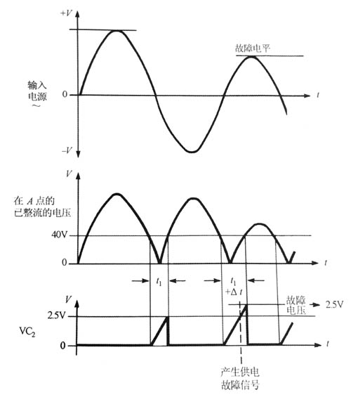 前述的系統對于持續低電壓故障的響應速度很慢,這些電路是依據峰值電壓以及平均電壓來實現報警的。另外報警電路中的濾波電容也將引起一個延時,濾波電容的取值要折中考慮。選擇較小的電容可防止在充電器保持時間與濾波電容時間常數之間產生矛盾,而選擇較大的電容可得到令人滿意的紋波電壓抑制。