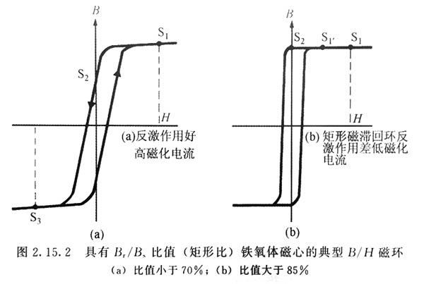 隨著原邊繞組兩邊的電壓降低,P2上的基極驅(qū)動電壓也降低,Q1將關(guān)斷。 由于B/H特性頂部限定的斜率(飽和后導(dǎo)磁率),從S1到S2變壓器中存在反激作用,因為dB/dt現(xiàn)在為負(fù),所有繞組上的電壓將改變方向。這將進(jìn)一步促使Q1關(guān)斷,Q2開始導(dǎo)通。 通過反饋作用,Q2導(dǎo)通,Q1關(guān)斷,工作周期在原邊另一半繞組中重復(fù)。磁心中的磁通從S2向S變化,又重復(fù)關(guān)斷作用。 注意:關(guān)斷作用的出現(xiàn)是由晶體管的電流增益限制引起的。由于集電極電流隨元件的類型和溫度而變化,所以這種限制作用并不是很精確。對于高增益晶體管,在受到增益限制之前就有較大的集電極電流流過。這使開關(guān)效率變差,并帶來EMI(電磁干擾)問題。還有,如果沒有仔細(xì)選擇正確的(低的)電流增益和額定值,在某些條件下,失去限制的集電極電流可能導(dǎo)致開關(guān)元件損壞。
