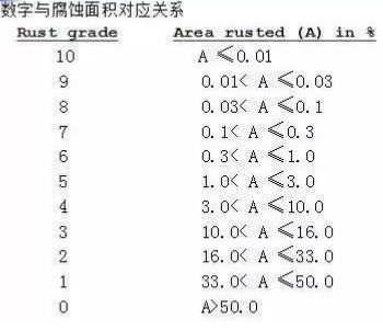 評定結(jié)果為 Ri后加一個阿拉伯數(shù)字,如 Ri6, Ri4.數(shù)字表示腐蝕面積 數(shù)字與腐蝕面積對應關系如下: