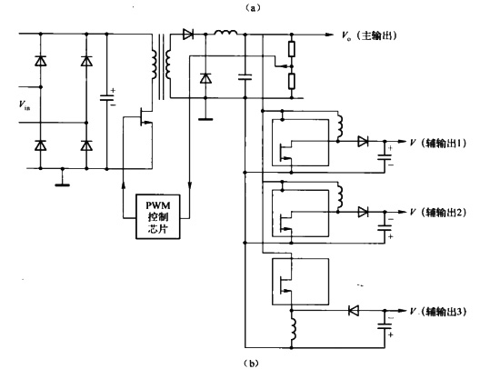 但如果要求輔助輸出有精確電壓輸出和良好調整率時,就必須對輔助輸出使用獨立反饋環控制。常用的做法是:需要較小電流輸出時,在較差調整的輔助輸出后級接線性調整器;需要較大電流時接Buck調整器或磁性放大器。