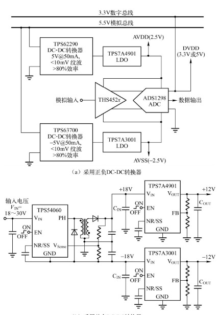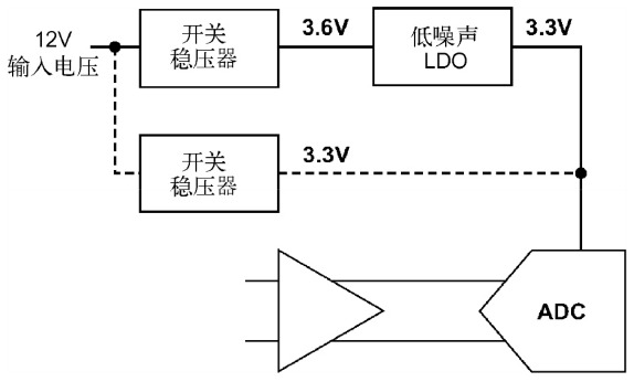 開關穩壓器使用輸出級,重復切換“開”和“關”狀態,與能量存貯部件(電容器和感應器)一起產生輸出電壓。它的調整是通過根據輸出電壓的反饋樣本來調整切換定時來實現的。開關穩壓器+低噪聲LDO線性穩壓器是電源工程師設計ADC和DAC電源適配器電路較常用的電路結構形式,如圖所示。通常,電源工程師都通過一個低噪聲的線性穩壓器來為數據轉換器(ADC或DAC)供電,而不使用開關穩壓器。這是因為,電源工程師擔心開關穩壓器的噪聲會進入數據轉換器的輸出頻譜,從而極大地降低數據轉換器的交流性能。![]() 1.從開關穩壓器+線性穩壓器模式到開關穩壓器模式 電源工程師正面臨越來越多的挑戰,他們需要在不降低電源適配器組件(例如:高速數據轉換器)性能的情況下讓其設計較大限度地節能。電源工程師們可能會轉而采用許多電池供電的應用(例如某種手持終端、軟件無線設備或便攜式超聲波掃描儀),也可能會縮小電源適配器的外形尺寸,從而需要尋求減少發熱的諸多方法。 在選擇高速數據轉換器時,功耗是較為重要的系統設計參數之一。不管是更長電池使用壽命的便攜式設計,還是散熱能力較低的小型產品,數據轉換器的功耗都至關重要。 極大降低系統功耗的一種方法是對高速數據轉換器的電源適配器進行優化。就高速數據轉換器而言,可通過一個共用5V電源適配器軌的線性穩壓器產生一個3.3V電源適配器。LDO穩壓器1.7V壓降,相當于降低35%的功耗。使用一個LDO穩壓器通過3.3V總線得到1.8VADC電源適配器時,如ADS4149ADC,線性穩壓器功耗增加至約45%。這也就是說,LDO消耗了差不多一半的功率。它表明,一種低效率的電源適配器設計多消耗一半功率是如此的容易。 開關穩壓器的效率與輸入電源適配器軌沒有一點關系,因此非常的節能。一些新一代的開關穩壓器針對噪聲進行了優化,使得設計人員可以直接通過一個DC-DC轉換器來為高速數據轉換器供電,只要細心進行設計,便可以較小化對交流性能所產生的影響,使交流性能沒有明顯的降低。 數據轉換器設計和工藝技術的一些較新進展,讓許多新型ADC可以直接由電源適配器來驅動,從而達到較大化功效的目的。 如圖所示,電源工程師們習慣在開關穩壓器和ADC之間使用一些低噪聲、低壓降的線性穩壓器,以清除輸出噪聲和開關頻率諧波。但是,這種干凈的電源適配器設計的代價是高功耗,因為線性穩壓器要求壓降余量來維持正常的運行。LDO線性穩壓器的較低壓降一般為200~500mV,但在一些系統中其可以高達1~2V(例如,由一個5V電源適配器產生一個ADC的3.3V電壓軌時)。 ![]() 就一個要求3.3V電壓軌的數據轉換器而言,線性穩壓器的300mV壓降增加約10%的功耗。這種效應在要求更低電源適配器電壓的數據轉換器中得到放大,例如,1.8V電壓軌的數據轉換器,相同300mV壓降增加約17%(300mV/1.8V)的功耗。因此,將該電源適配器通道中的低噪聲LDO線性穩壓器除去,則可以產生巨大的節能效果。去除LDO線性穩壓器還可以降低設計的板級空間、熱量以及成本。 線性可調型開關穩壓器包含輸出變壓器,輸入和輸出之間必須進行隔離,以避免產生感應電壓。