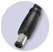 直插DC頭的內壁就沒有彈片,整個內壁為一個光滑的金屬圓柱體,與之相匹配的DC座內針接觸連接,相對于音叉插頭其穩固性就沒那么好.但是在大電流的情況下使用比較穩定,因為直插DC頭內壁與DC座金屬內針接觸面積要大于音叉DC頭,它對DC座金屬內針尺寸要求比較嚴格,例如5.5*2.5音叉插頭只可以與5.5*2.5相匹配的插座匹配,與5.5*2.1相匹配的插座匹配的話就無法匹配接觸到或者發生接觸不良的情況.