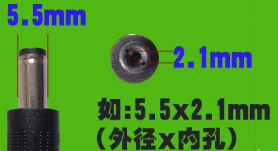 ※  5.5*2.5(外徑*內徑),主要用于功率稍為大一點的設備,如果某些筆記本電腦,電動車等.