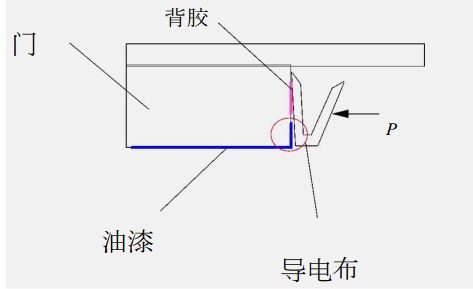 公司某產品在沒有組網的情況下,僅僅連接了地線和電源線后通電進行輻射發射測試, 結果發現在 55~70MHz、 160~170MHz 等多處超出 classB 級限值線。 先仔細檢查該產品的地線、 電源線, 地線直接接在機柜底板上不會引起輻射, 電源線上已經加置濾波器且濾波器安裝正確,在以往測試中這樣的電源線也不會產生輻射。機柜頂部有一空調由機柜內部交流供電, 空調也可能產生輻射, 將空調關電, 結果輻射沒有減少。 綜上所述,可以判定機柜屏蔽有問題。 機柜門上已經貼了 L 型帶背膠與彈性內芯的導電布, 按照以往的經驗,在門與門框之間粘貼導電材料是可以解決門縫泄漏問題的, 懷疑門縫間隙太大,我們在機柜門框上再增加一層 L 型導電材料,居然無效果。我們自制了一個簡易的磁場探頭, 和HP8591EM 分析儀及放大器相連組成EMI 診斷設備, 結果發現門縫使用導電布之后確實還存在很大的電磁泄漏。 仔細觀察門結構,發現問題如下:導電布靠背膠粘貼在門的側面, 背膠是不導電的,當關門時靠壓力 P 使導電布后部與門保持電接觸。 但本機柜門側邊粘貼導電布的部位,油漆涂得比較靠內(如圖中紅色圈所示),使得導電布后部無法與機柜金屬體接觸上。