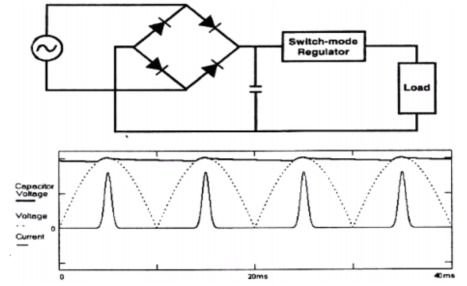 對那些設備整體呈感性或容性的電子、電氣設備(如電動設備等),在正常工作時,其電流波形的峰值出現時間可能會滯后或超前電壓波形的峰值,造成產品的功率因素的下降。 對此類設備較常采用的方式是對應的容性或感性補償,使補償后的電流波形的峰值出現時間與電壓波形的峰值出現時間保持同步。 此類補償需注意,不要出現過補償,否則,效果適得其反。 此類補償方式多用于電力系統的功率因素補償,一般的電子、電氣設備上較少采用。 因為,一般的電子、電氣設備的諧波問題主要表現為波形畸變,而不僅是電流波形相位滯后、超前的問題,這種補償方式效果不明顯。 下面首先介紹兩種被動式功率因數校正電路,然后再介紹主動式功率因數校正電路。 對一般用電設備來說,這兩種被動式功率因數校正電路所增加的元件成本均比較低,體積也不大,一般是可以接受的。 采用主動式功率因數校正電路的比被動式成本略高,但校正效果會比被動式好的多。 對有些采用其它方案不能湊效的產品,主動式功率因數校正電路可能是較后的選擇。當然,有些產品為提高產品質量和檔次,也會主動采用主動式功率因數校正電路。