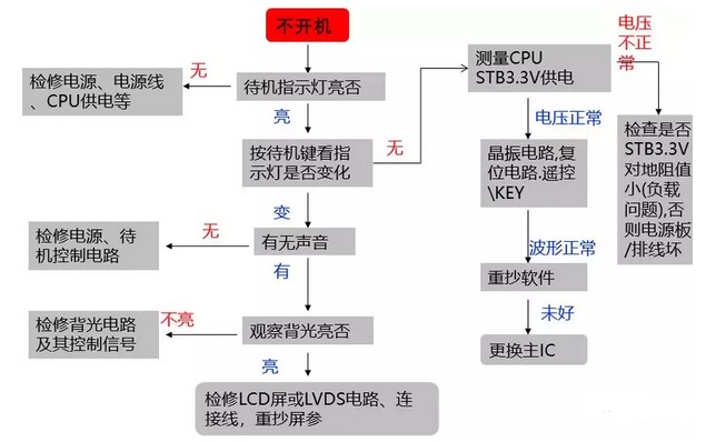 原因分析:更換其他型號U盤后可以開機。斷開USB插座RX、TX腳,機器可以正常開機。用示波器測量RX、TX波形,發現TX腳在開機瞬間有1.6V電平,試加下拉或上拉電阻調整該點電平到1.5V以下或1.7V以上,可以開機。分析開機瞬間CPU讀取TX引腳信息,當電平處于1/2 VCC時無法識別高/低電平,CPU一直在讀取信息,所以開不了機。