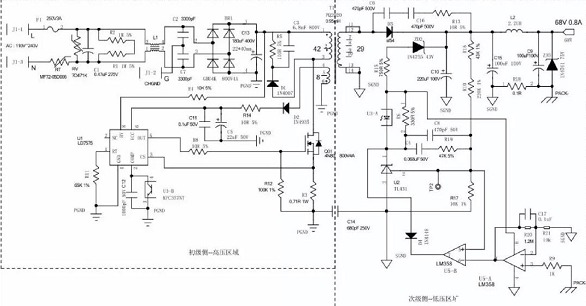10W-100W以內常用反激式拓撲 (75W以上電源有PF值要求)