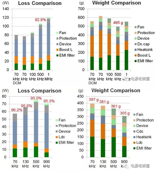| 電源適配器EMI和干擾 在我接觸EMI前,很多電源適配器工程師以他們有豐富的EMI調(diào)試經(jīng)驗(yàn)來鄙視我們這些菜鳥,搞的我一直以為EMI是門玄學(xué),也有很多人動(dòng)不動(dòng)就拿EMI出來嚇人。我想說電源適配器EMI確實(shí)很難理解,很難有精確的紙面設(shè)計(jì),但是通過研究我們還是能知道大概趨勢指導(dǎo)設(shè)計(jì),而不是一些工程嘴里完全靠trial and error的流程。 這就是我們電源適配器工程師外出機(jī)構(gòu)做測試的實(shí)驗(yàn)室~ ![]() 我先給出結(jié)論,電源適配器EMI確實(shí)和開關(guān)頻率不成線性關(guān)系,某些開關(guān)頻率下,EMI濾波器的轉(zhuǎn)折頻率較高,但是總體趨勢而言,是開關(guān)頻率越高,電源適配器EMI體積越小! 我知道很多人開始噴我了,怎么可能,di/dt和dv/dt都大了,怎么可能EMI濾波體積還小了。我想說一句,共模和差模濾波器的沒有區(qū)別,相同的截止頻率下,高頻的衰減更大!就算你高頻下共模噪聲越大,但是你的記住,這個(gè)頻率下LC濾波器的衰減更大,想想幅頻曲線吧。為了說明這個(gè)結(jié)論,我給出一些定量分析結(jié)果。這些EMI分析均基于AC/DC三相整流,拓?fù)錇榫S也納整流。我分別給出了1Mhz和500Khz的共模噪聲,可以看出,500khz共模濾波器需要的截止頻率為19.2kHz,1MHz為31.2kHz。 ![]() 這張圖給出了不同頻率下共模和差模濾波器轉(zhuǎn)折頻率的關(guān)系,可以看出,一些低頻點(diǎn)EMI濾波器體現(xiàn)出了非常好的特性。例如70Khz,140Khz。而這兩個(gè)開關(guān)頻率是工業(yè)界常用的兩個(gè)開關(guān)頻率,非常討巧,因?yàn)镋MI噪聲測試是150KHz到30MHz。不過這個(gè)也與拓?fù)溆嘘P(guān)。 ![]() 以上數(shù)據(jù)均基于仿真,雖然不能精確的反應(yīng)EMI噪聲的大小,但是趨勢肯定是正確的。說了這么多,我只想表明,開關(guān)頻率的選取相當(dāng)有學(xué)問。如果要以高功率密度為設(shè)計(jì)指標(biāo),開關(guān)頻率并不是越高越好,而是有一個(gè)較佳轉(zhuǎn)折點(diǎn)。下面2張圖給出了維也納整流器和BUCK-type整流器的功率密度趨勢,可以看出,較佳功率密度點(diǎn)不是一個(gè)開關(guān)頻率。對那些拍著腦瓜選開關(guān)頻率,解決EMI問題并且鄙視過我的老工程師,我還是懷有很大敬意的,但是我想說的是,如果真正想設(shè)計(jì)一臺(tái)較高功率密度的變換器,詳細(xì)的考證是值得的,還不是單純依靠經(jīng)驗(yàn),況且經(jīng)驗(yàn)背后也是一定有理論支持。 ![]() 我不禁問個(gè)問題,都有EMI濾波器,EMI噪聲都符合標(biāo)準(zhǔn),為啥高頻干擾大。難道大家在實(shí)際工程遇到高頻干擾是個(gè)假象?不是的,舉一個(gè)非常簡單的例子,剩下的自己思考吧。 在輸入電壓較高的場合中,一般開關(guān)管驅(qū)動(dòng)的都需要隔離。我們知道隔離后一端的地一般要接到懸浮開關(guān)管的源端,一般這一點(diǎn)的電平是跳變的,以氮化鎵晶體管為例,這點(diǎn)電壓變化率可以達(dá)到140kV/us。而隔離芯片前一端的地是與控制地連接的,你隨便看看隔離模塊電源的手冊,原副邊耦合的寄生電容一般在60pF左右,也是就說在高速開關(guān)瞬間,會(huì)產(chǎn)生大約6A的電流從副邊的地通過電容耦合到原邊,原邊的地電平肯定瞬間產(chǎn)生尖峰,整個(gè)控制系統(tǒng)產(chǎn)生強(qiáng)烈的干擾。所以做高頻的時(shí)候,隔離電源的地線千萬不要平行的鋪在2層PCB中,干擾效果會(huì)更加強(qiáng)烈。 同時(shí)選隔離芯片的時(shí)候也需要注意一個(gè)參數(shù)叫做CM transient immunity(肯定會(huì)給的),這個(gè)參數(shù)較好大于開關(guān)瞬間,橋臂中點(diǎn)電平的變化速率。光耦隔離這個(gè)參數(shù)一般在30kV/us,磁耦在35kV/us,電容耦合在50kV/us(是不是絕望了,都比氮化鎵低,硅器件一般在10kV/us,Sic 30kV/us)。 ![]() 還有很多細(xì)節(jié)可以引起干擾,不過真的不是EMI噪聲做的孽。 我先簡單的把以上內(nèi)容總結(jié)一下: 電源適配器不是開關(guān)頻率越高,功率密度就越高,目前這個(gè)階段來說真正阻礙功率密度提高的是散熱系統(tǒng)和電磁設(shè)計(jì)(包括EMI濾波器和變壓器)和功率集成技術(shù)。 慎重選擇開關(guān)頻率,開關(guān)頻率會(huì)極大的影響整個(gè)變化器的功率密度,而且針對不同器件,拓?fù)洌^佳的開關(guān)頻率是變化的。 高頻確實(shí)產(chǎn)生很多很難解決的干擾問題,往往要找到干擾回路,然后采取一些措施。 為了繼續(xù)維持電力電子變換器功率密度的增長趨勢,高頻肯定是趨勢。只是針對高頻設(shè)計(jì)的電力電子技術(shù)很不成熟,相關(guān)配套芯片沒有達(dá)到要求,一些高頻的電源適配器電磁設(shè)計(jì)理論不完善和精確,使用有限元軟件分析將大大增加開發(fā)周期。 文章轉(zhuǎn)載自網(wǎng)絡(luò),如有侵權(quán),請聯(lián)系刪除。 |