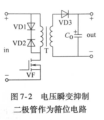 近年來,隨著電壓瞬變抑制二極管的國產化和大量的應用電壓瞬變抑制二極管的價格已經可以比較輕松地應用在反激式電源適配器中?采用電壓瞬變抑制二極管的而箝位電路如圖7-2所示。