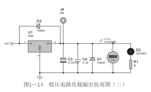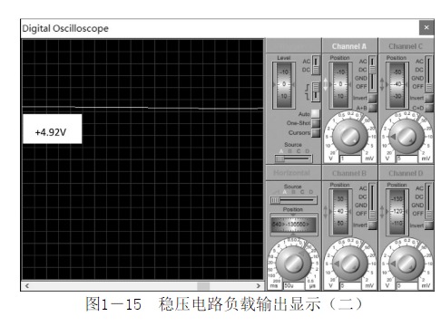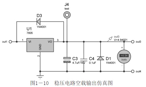 圖所示為穩壓電路仿真結果,可見由穩壓器輸出端VO經濾波輸出+4.94V穩定直流電壓。