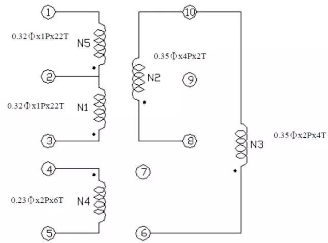變壓器的接線圖: 電源適配器