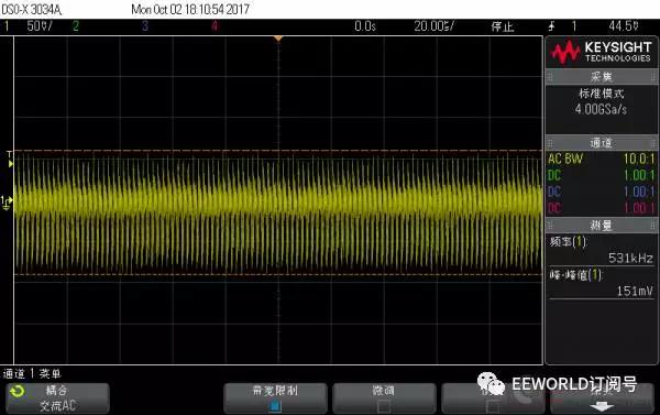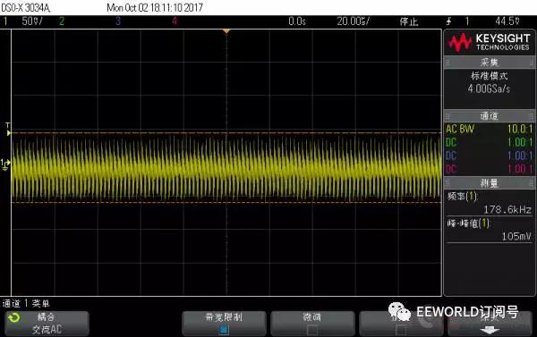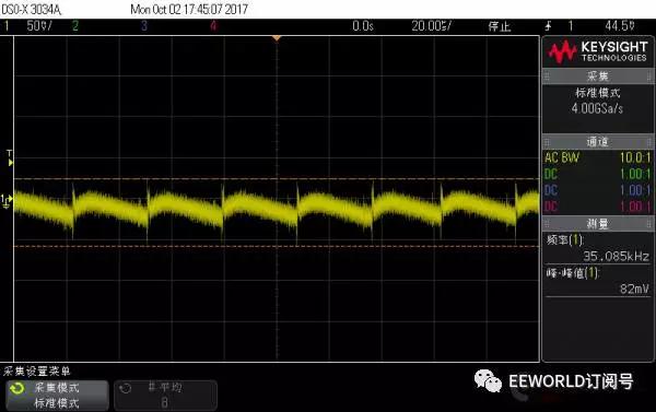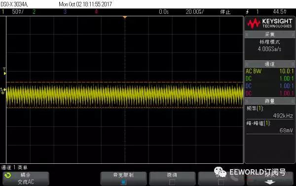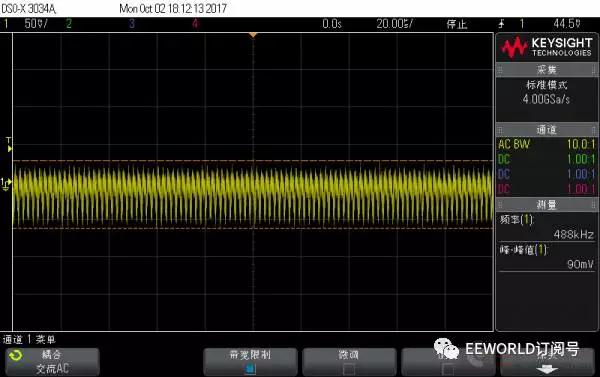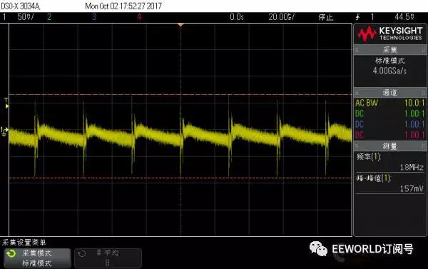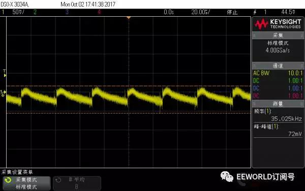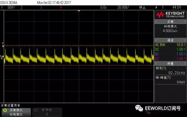 先說說測試之前的預期或者認識: Anker 的新款能賣這么貴,毫無疑問紋波比老款控制的好; 蘋果的充電器是目前較常用的,覺著能賣這么貴,質量自然是不錯的; 黑色的 Bigben,是在淘寶上買的,說是英國貨,但google到的資料很少,的幾條記錄都是指向國內的淘寶...這個充電頭質量還行,原來試過同時給ipad和充電寶充電,3.4A也是妥妥的!但是有“蜂鳴聲”:手機充滿了,電源輕載就有蜂鳴聲;聲音微弱,不過留意聽還是可以聽到的;甚至,空載的時候從插座拔下來,把它放到耳邊,能清楚的聽到蜂鳴聲過一段時間才消失;本以為是個別現象,后來又買了一個還是同樣的問題!!!這個“蜂鳴聲”本不大,但是一旦聽到就沒法忽略,遂閑置很少再用 堅果pro的18W充電器,試過給堅果手機充電,快充支持的很好,但是帶兩個充電頭不方便,也很少用 “終結者”移動電源是我親見過較強大的移動電源,QC3.0輸入、輸出,甚至支持一些筆記本適配器直接充電,也可以給ipad 2.4A充電,其他的電壓、電流、溫度、氣壓計、電子羅盤...應有盡有!這個是我的出差必備 廢話不再多說,下面開始上圖 測試條件 負載:1A 測試時僅采用1個4.7Ω功率電阻,2A 測試時在前者基礎上并聯(lián) 4Ω 電阻 (考慮導線壓降,實際電流分別為大于0.9A,和大于1.9A) 示波器:交流耦合,20us/div , 50mV/div, 20M 帶寬限制,1:10衰減探頭 下面正式開始測試 PS. 由于是負載端直接測量,測量結果可能沒法和正規(guī)測試相對比,在這里僅做個橫向對比 Anker 新款 充電器 1A 帶載波形